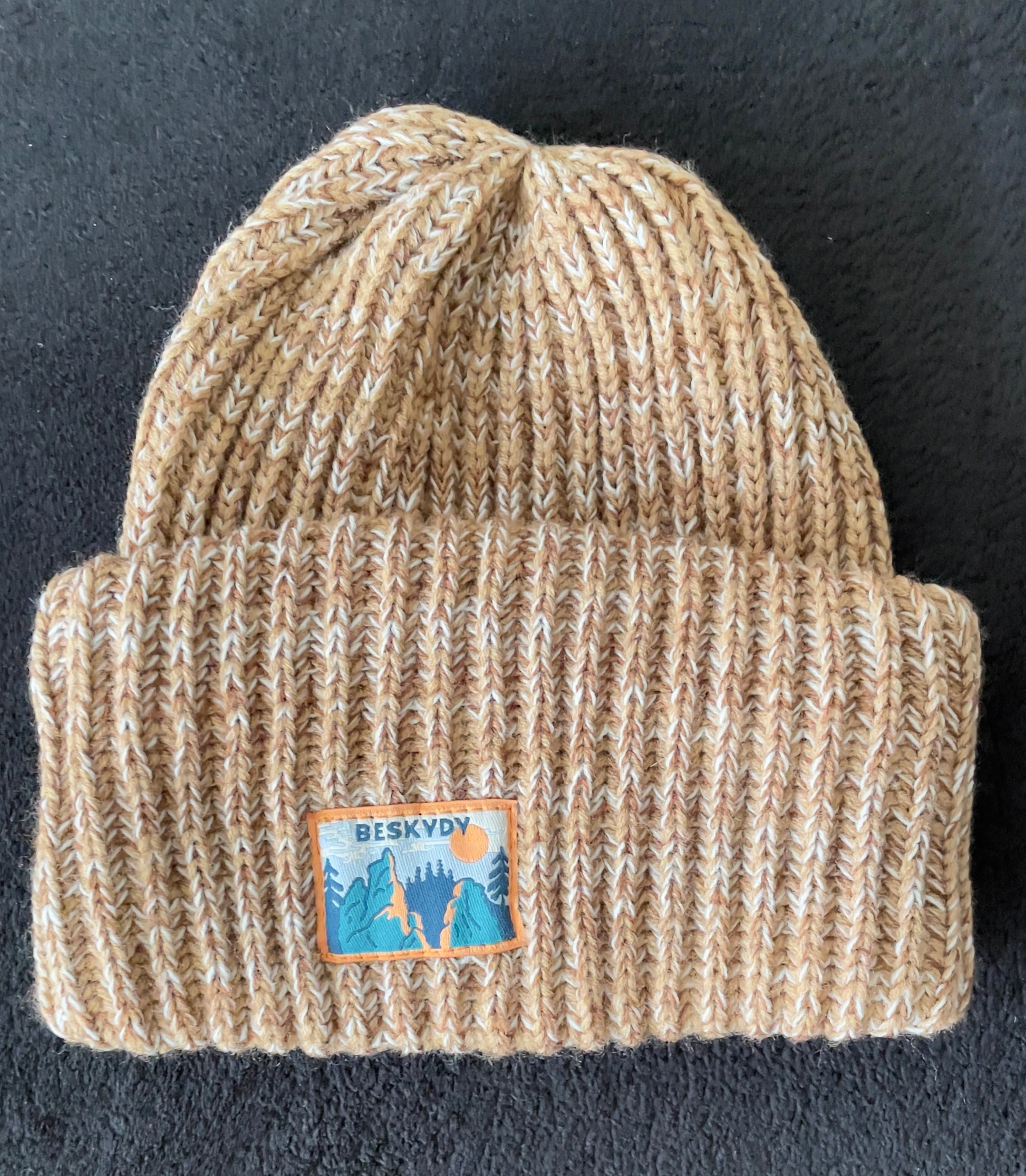 Double fold to get that snug warmth with a unique patch of Ukrainian mountain range.